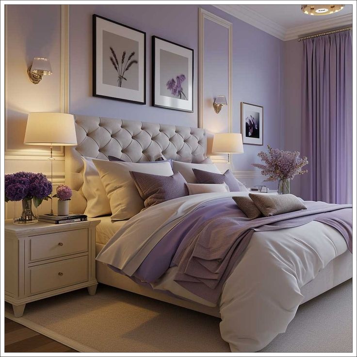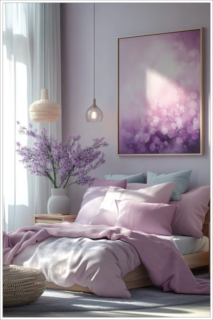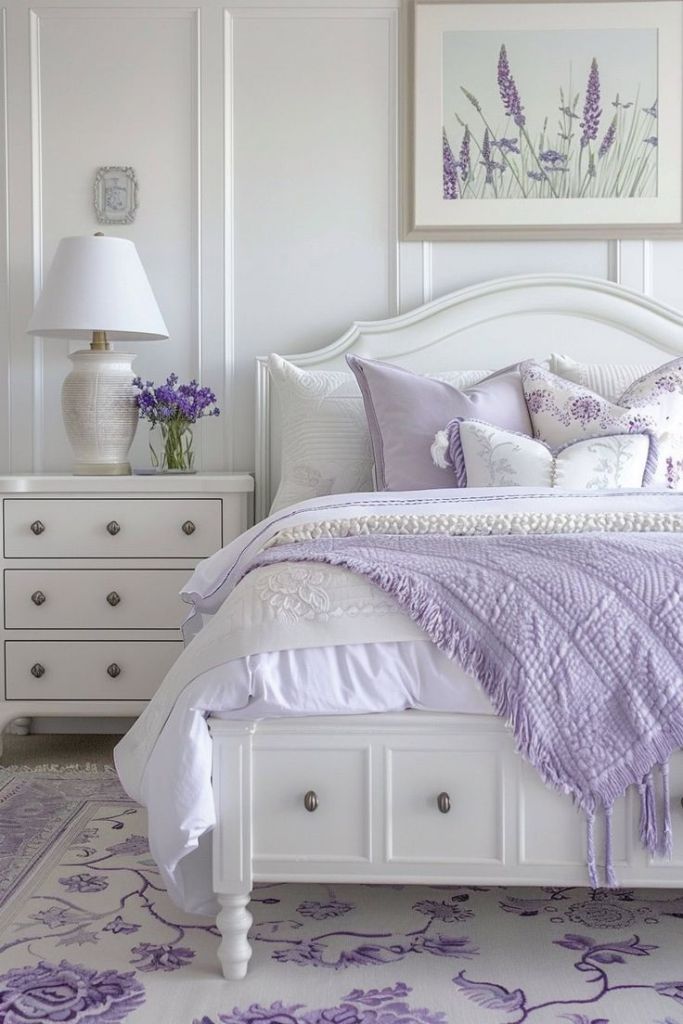 Δημιουργείστε ένα ρομαντικό υπνοδωμάτιο στα απαλά χρώματα του λιλά και της λεβάντας.