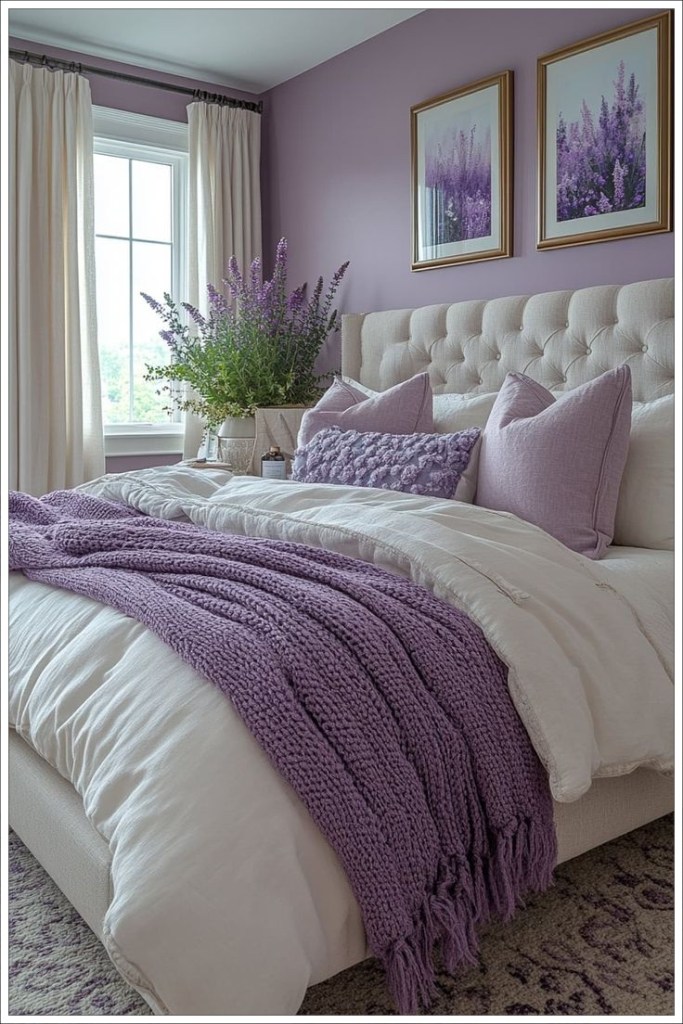 - Εντάξτε το χρώμα της λεβάντας στα σεντόνια, τις κουρτίνες ή τα διακοσμητικά μαξιλάρια.