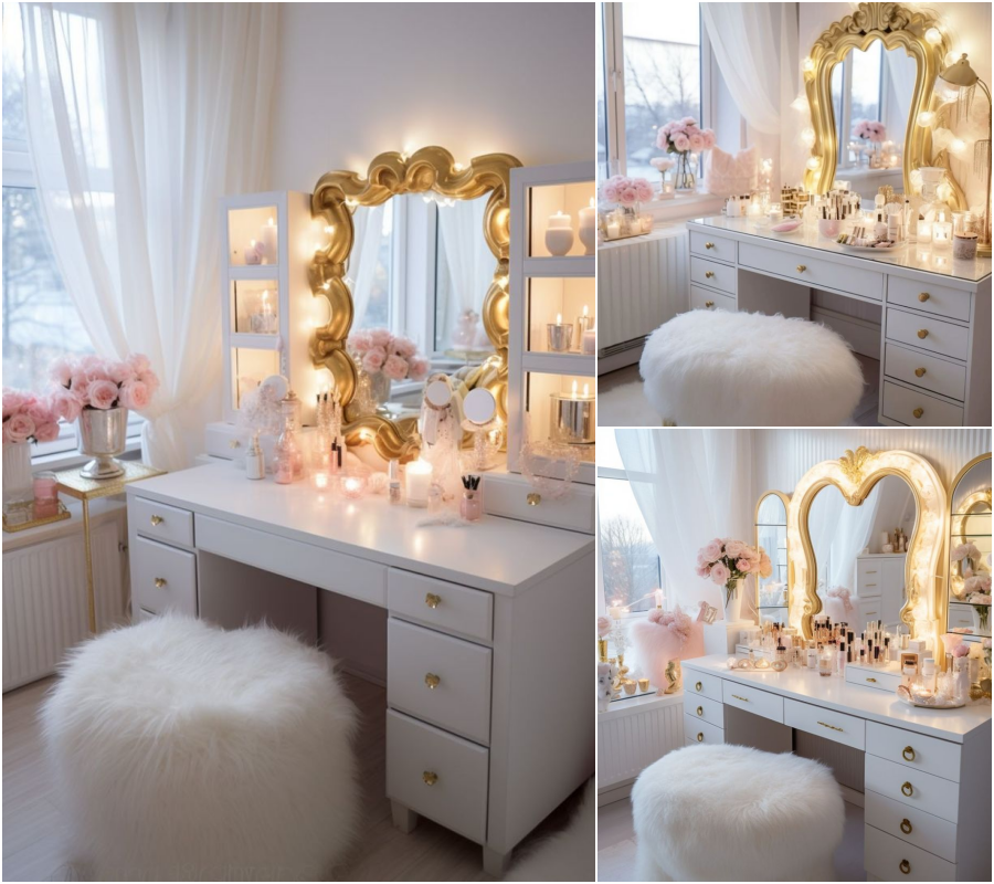 Χρήσεις του Μπουντουάρ: Ένα μπουντουάρ μπορεί να χρησιμοποιηθεί ως χώρος προετοιμασίας για καλλωπισμό και προσωπική φροντίδα. Είναι ιδανικό για να διατηρείτε τα καλλυντικά σας οργανωμένα και να δημιουργείτε μια άνετη ατμόσφαιρα για την καθημερινή σας ρουτίνα.Η επιφάνεια του μπουντουάρ προσφέρει χώρο για καλλυντικά, πινέλα και εργαλεία περιποίησης.