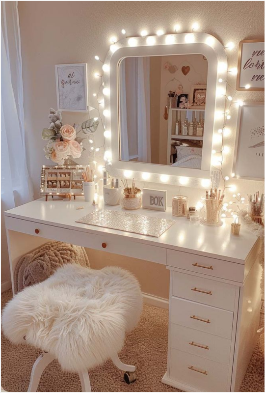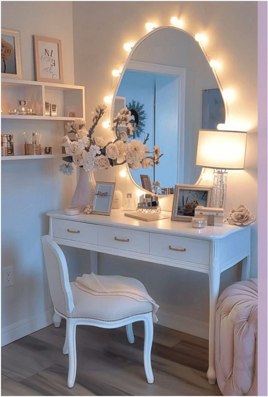 Χώρος Χαλάρωσης & Προσωπικού Στιλ :Μπορεί να λειτουργήσει ως γωνιά για πρωινή ρουτίνα περιποίησης ή ακόμα και ως χώρος για γράψιμο ή σκέψεις.