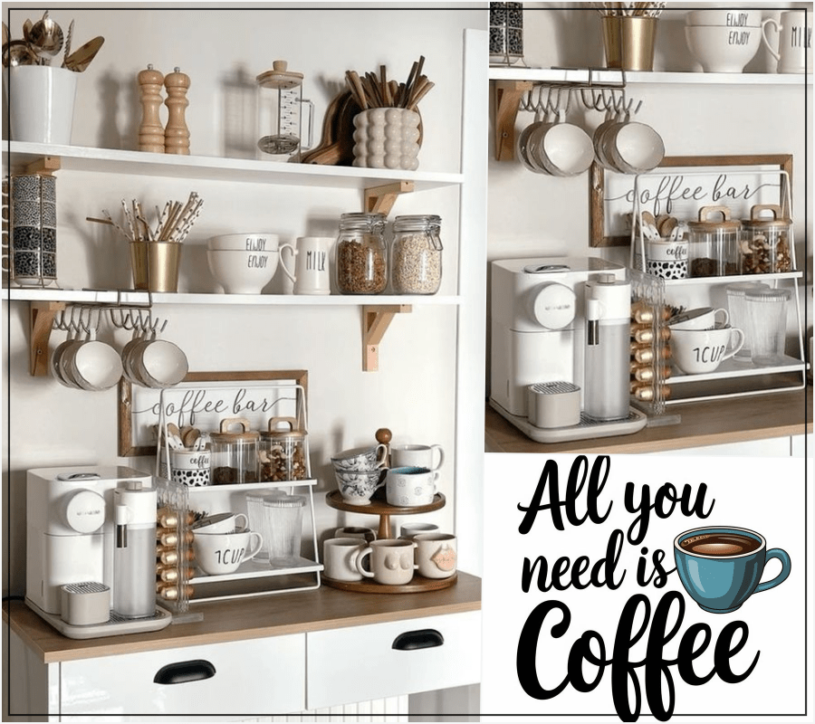 Αν θέλετε να δημιουργήσετε μια γωνιά καφέ πάνω στον πάγκο της κουζίνας, μπορείτε να την οργανώσετε με στυλ και πρακτικότητα χωρίς να πιάνει πολύ χώρο!
