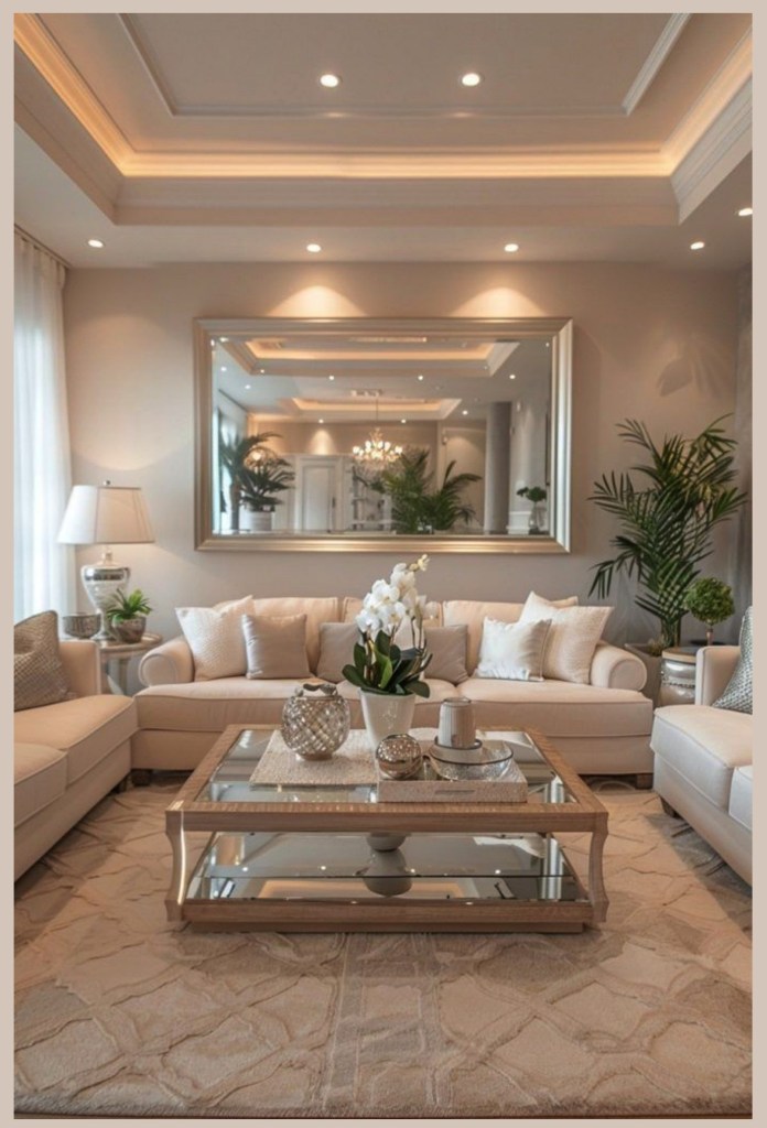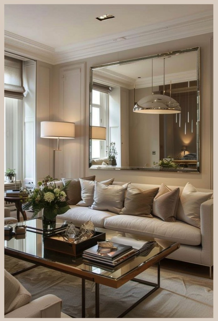 Ο κλασικός καθρέφτης στο σαλόνι είναι ένα διαχρονικό στοιχείο διακόσμησης που προσφέρει στυλ, φως και αίσθηση μεγαλύτερου χώρου. Ανάλογα με το ύφος του σαλονιού σας, μπορείτε να επιλέξετε διάφορα σχέδια και κορνίζες: