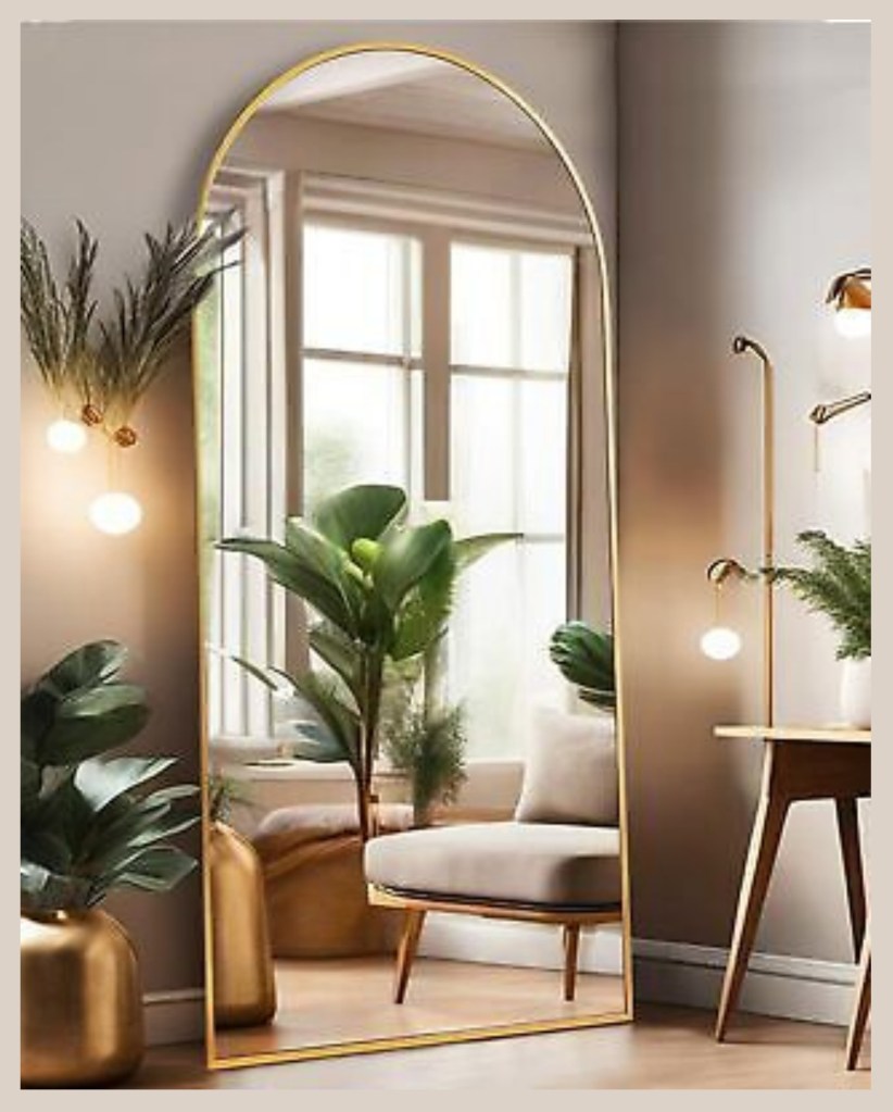 Μεγάλος Επιδαπέδιος Καθρέφτης – Τοποθετημένος σε μια γωνία, δίνει κομψότητα και φωτίζει τον χώρο.