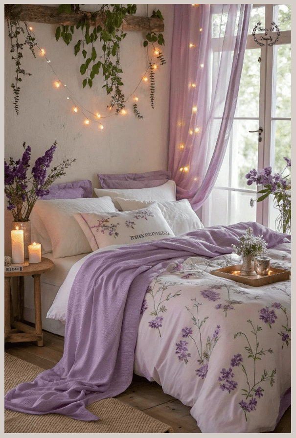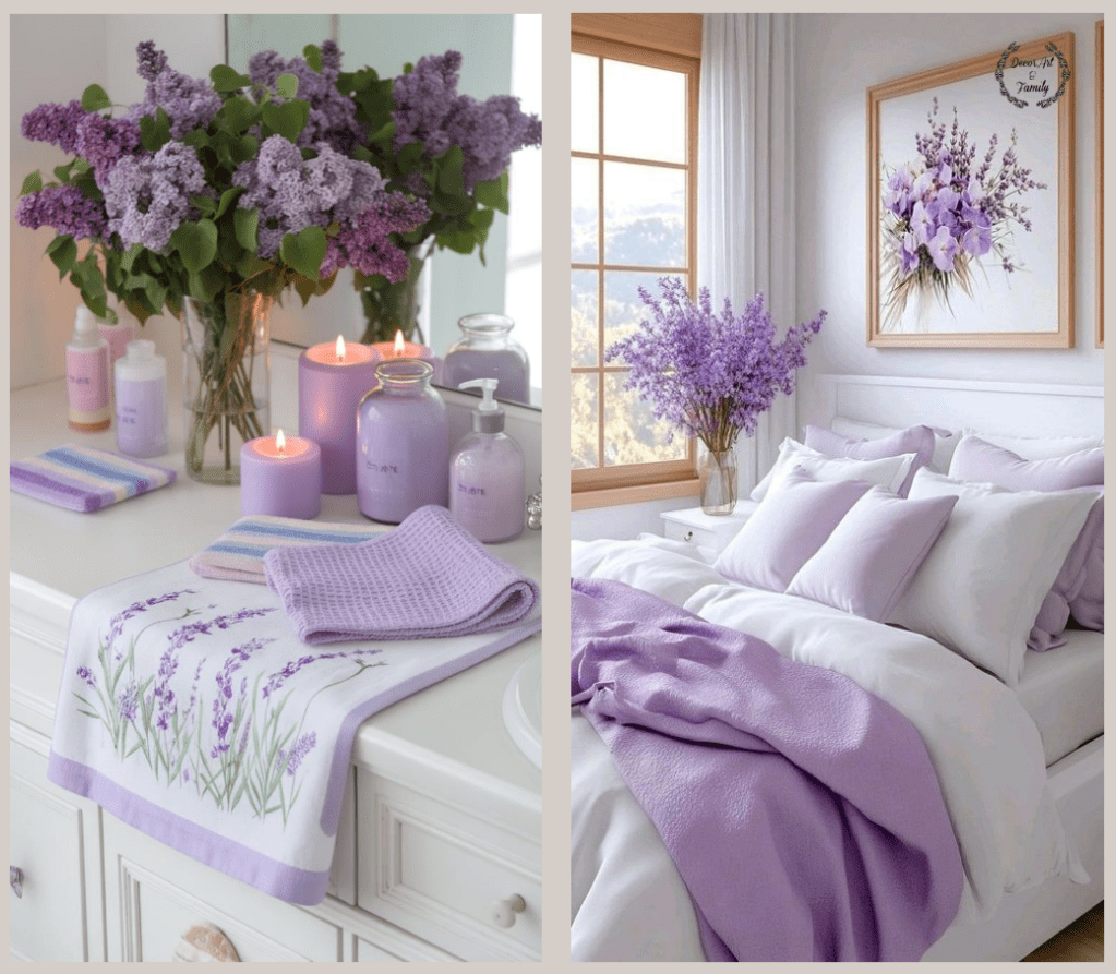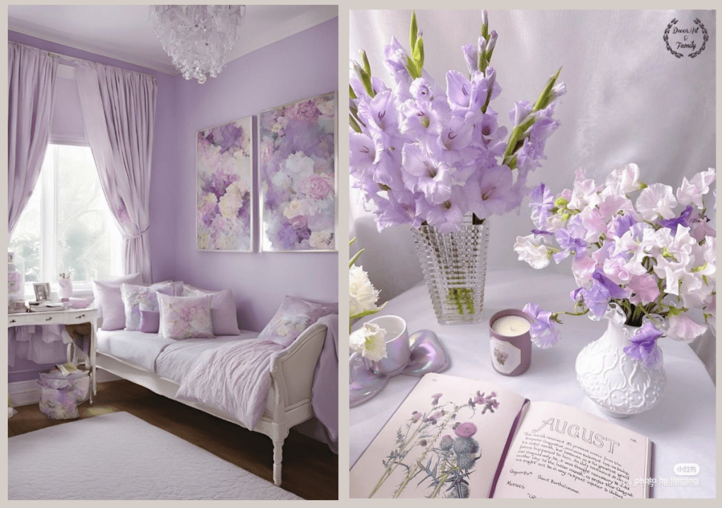 - Λεβάντα & παστέλ ροζ → Ρομαντικός και απαλή ατμόσφαιρα.