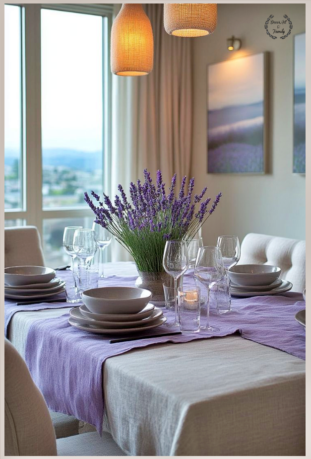 Ένα runner τραπεζαρίας σε χρώμα λεβάντας είναι μια υπέροχη επιλογή για να προσθέσετε μια κομψή και γαλήνια ατμόσφαιρα στον χώρο σας. Είναι ιδανικό τόσο για καθημερινή διακόσμηση όσο και για ειδικές περιστάσεις, όπως δείπνα, γιορτές ή brunch.