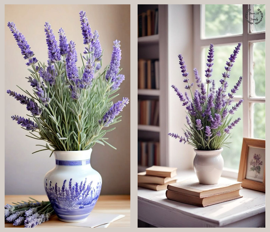 Ένα βάζο με αποξηραμένη λεβάντα προσθέτει φυσική ομορφιά και άρωμα στο χώρο.