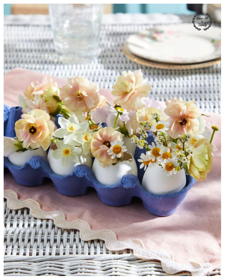 Βάλτε μικρά λουλούδια (όπως μαργαρίτες ή παιώνιες) μέσα στις αυγοθήκες και τοποθετήστε στο πασχαλινό τραπέζι.