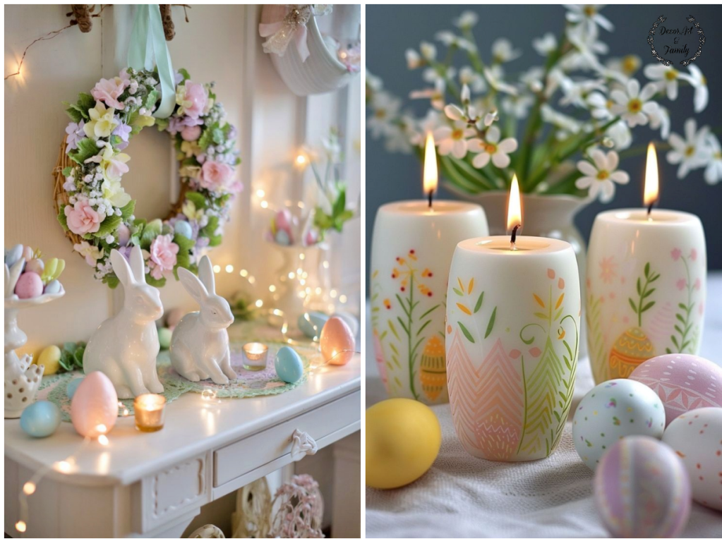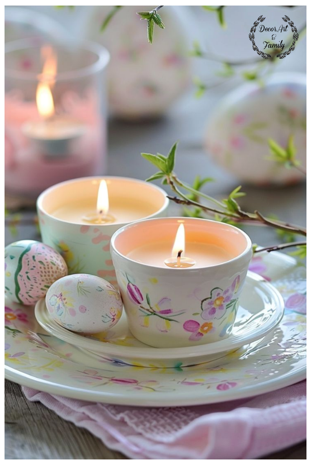 Τα πασχαλινά κεριά σε παστέλ χρώματα είναι μια υπέροχη ιδέα για να δημιουργήσετε μια ζεστή και ανοιξιάτικη ατμόσφαιρα στο σπίτι σας. Μπορείτε να τα χρησιμοποιήσετε στο τραπέζι, στο σαλόνι, στο μπουφέ ή ακόμα και σε εξωτερικούς χώρους.