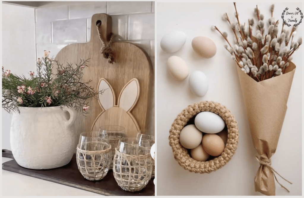 Αν ψάχνετε για πασχαλινή διακόσμηση με φυσικά χρώματα και μια natural, γήινη αισθητική, εδώ είναι μερικές όμορφες και απλές ιδέες που μπορείς να δοκιμάσετε: