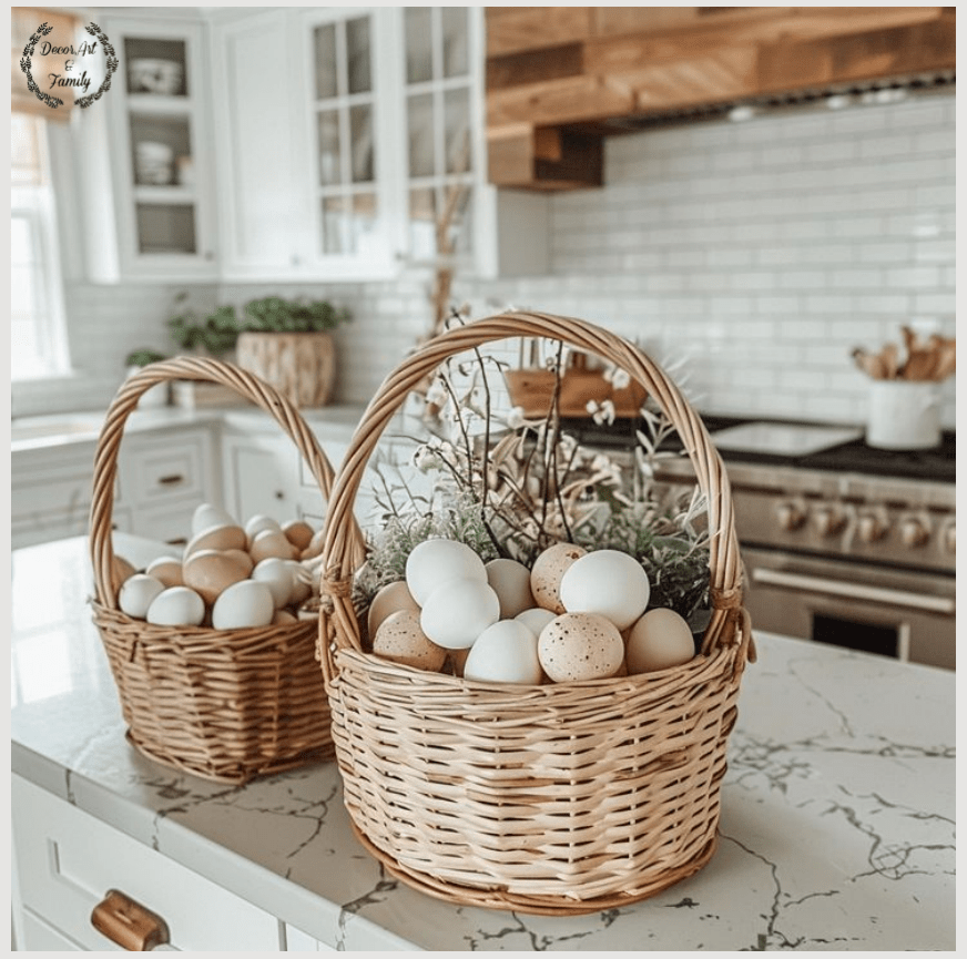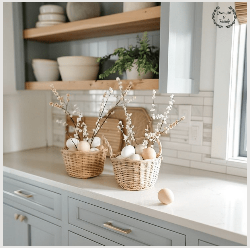 Η ρουστίκ πασχαλινή διακόσμηση δίνει μια ζεστή, φυσική και γήινη αίσθηση, και ταιριάζει απίστευτα καλά με την κουζίνα – ειδικά αν έχει ξύλινες λεπτομέρειες ή country vibes.