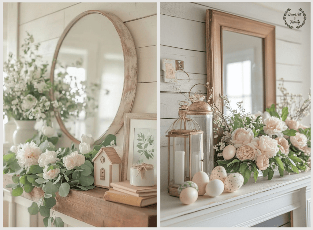 Το τζάκι είναι τέλειο σημείο για ρουστίκ πασχαλινή διακόσμηση — δίνει αμέσως στο χώρο μια ζεστή, φυσική και παραδοσιακή αίσθηση.Οι λατέρνες, τα αυγά και τα λουλούδια δημιουργούν μια πολύ ρομαντική και country-ρουστίκ πασχαλινή αίσθηση στο τζάκι — σαν να βγήκε από περιοδικό διακόσμησης!