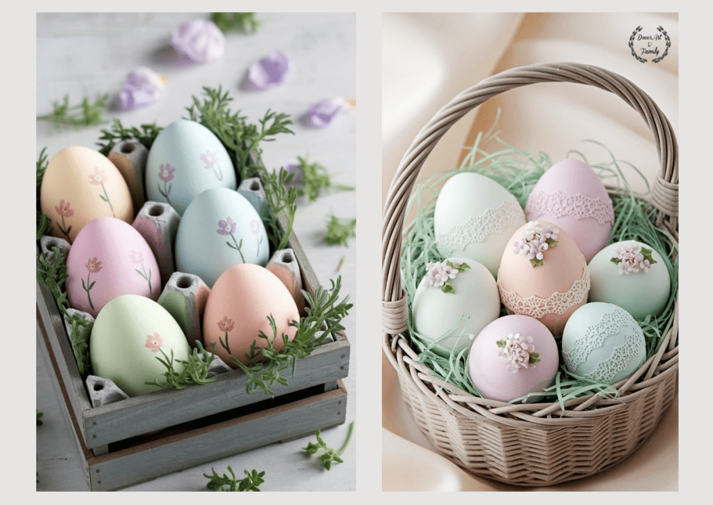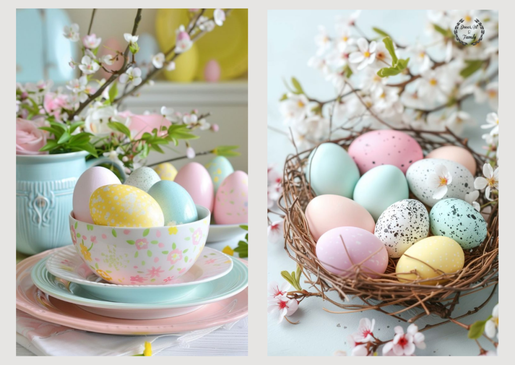 Τα παστέλ αυγά του Πάσχα είναι μία υπέροχη επιλογή για τη διακόσμηση, καθώς δίνουν έναν ρομαντικό, κομψό και φωτεινό τόνο στη γιορτινή ατμόσφαιρα. Τα παστέλ χρώματα – όπως το απαλό ροζ, γαλάζιο, λιλά, μέντα και κίτρινο – συμβολίζουν την αναγέννηση, την ελπίδα και τη νιότη, έννοιες απόλυτα συνυφασμένες με το Πάσχα.