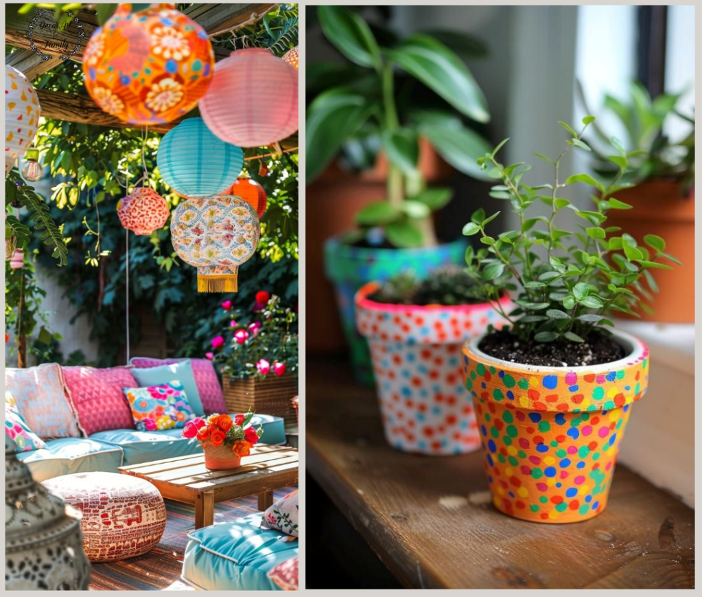 Η πολύχρωμη διακόσμηση στη βεράντα μπορεί να δώσει απίστευτη ζωντάνια και θετική ενέργεια στον χώρο σας.Παίξτε με γλάστρες σε διάφορα χρώματα ή βάψτε μόνη σας απλές γλάστρες ή γλαστράκια. Κρεμάστε πολύχρωμα χάρτινα φωτιστικά.