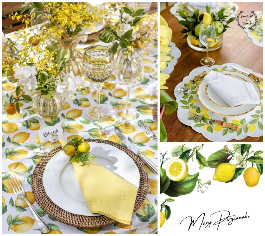 Τραπεζομάντηλα ή σουπλά με prints από λεμόνια δημιουργούν έναν φωτεινό, χαρούμενο τόνο.