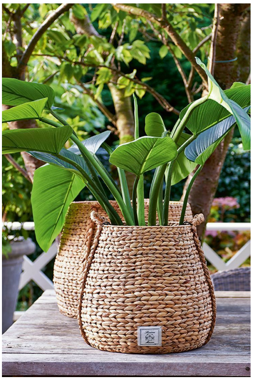 Ακόμα και στις γλάστρες, ένα ψάθινο κάλυμμα ή καλαθάκι αντί για απλή ζαρντινιέρα αλλάζει όλο το ύφος.