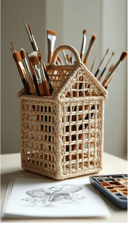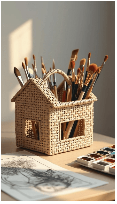 Ψάθινες μολυβοθήκες είναι μια διακριτική αλλά στιλάτη πινελιά για το γραφείο ή τη βιβλιοθήκη, συνδυάζοντας οργάνωση με φυσική, χειροποίητη αίσθηση.