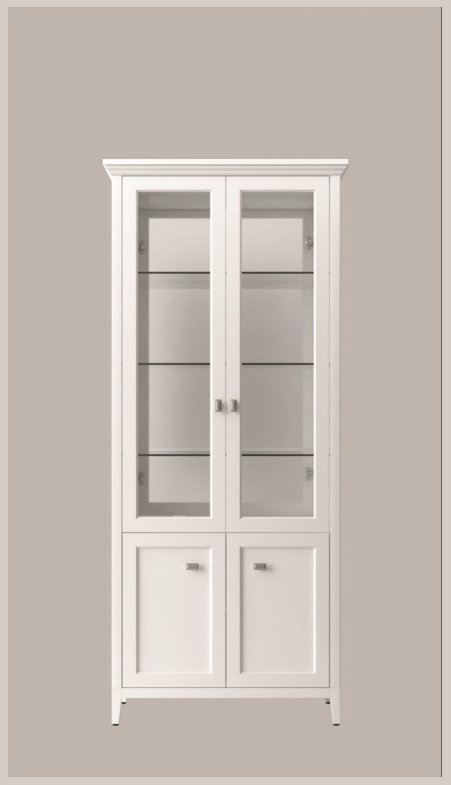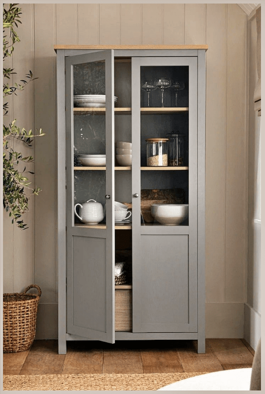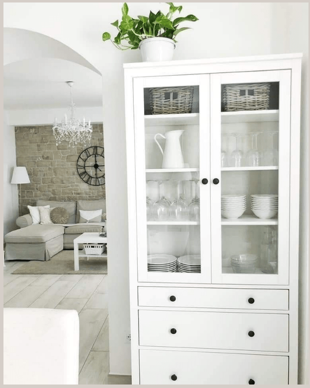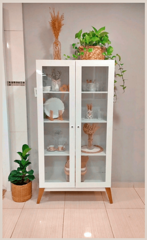 Μια βιτρίνα σε λευκό χρώμα είναι η πιο διαχρονική επιλογή. Ταιριάζει σε σαλόνι, τραπεζαρία ή ακόμη και στο υπνοδωμάτιο. Δώσε ζωντάνια με μπλε διακοσμητικές πινελιές – όπως βάζα, κεραμικά ή βιβλία με μπλε εξώφυλλα – για μια φρέσκια, κομψή αντίθεση.