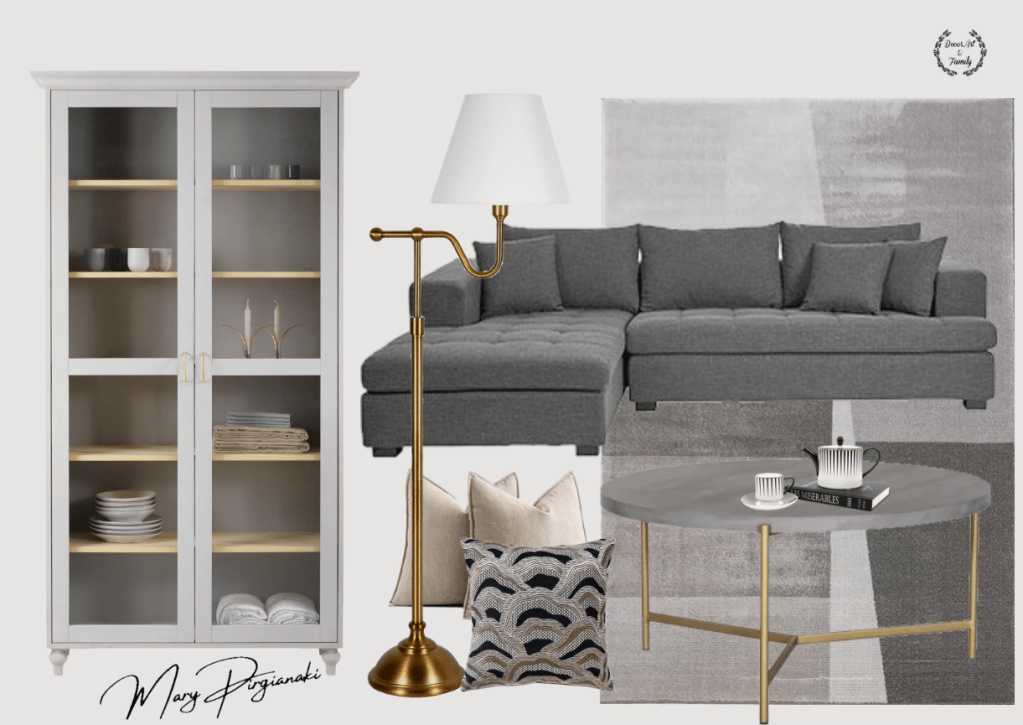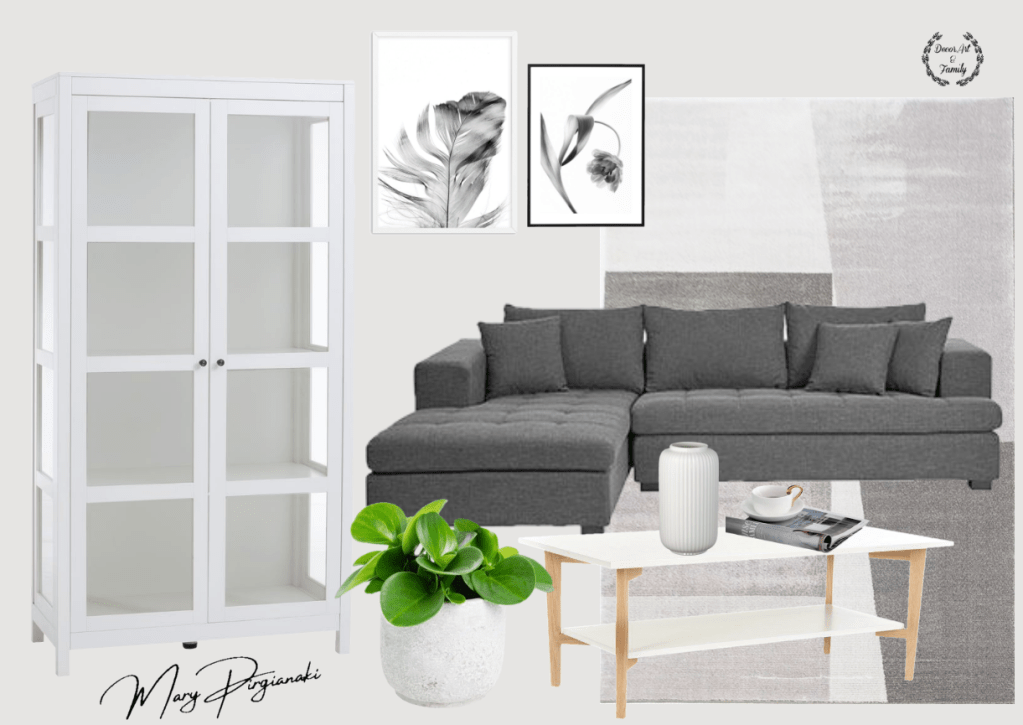 Η γκρι βιτρίνα φέρνει μοντέρνο και cozy χαρακτήρα. Ιδανικά ταιριάζει με λευκά ή μπεζ αντικείμενα, αλλά και με μεταλλικές λεπτομέρειες (π.χ. χρυσά ή ασημί διακοσμητικά). Έτσι, γίνεται το ήρεμο background που αναδεικνύει το περιεχόμενο.