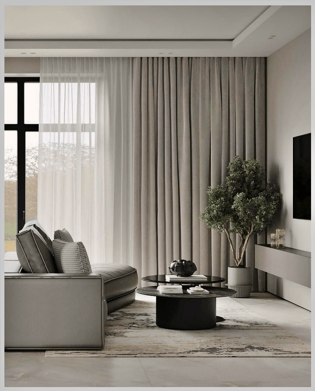 - Σε έναν μοντέρνο χώρο, οι ανοιχτές γκρι κουρτίνες δίνουν καθαρότητα και φως, ιδανικές για minimal αισθητική.