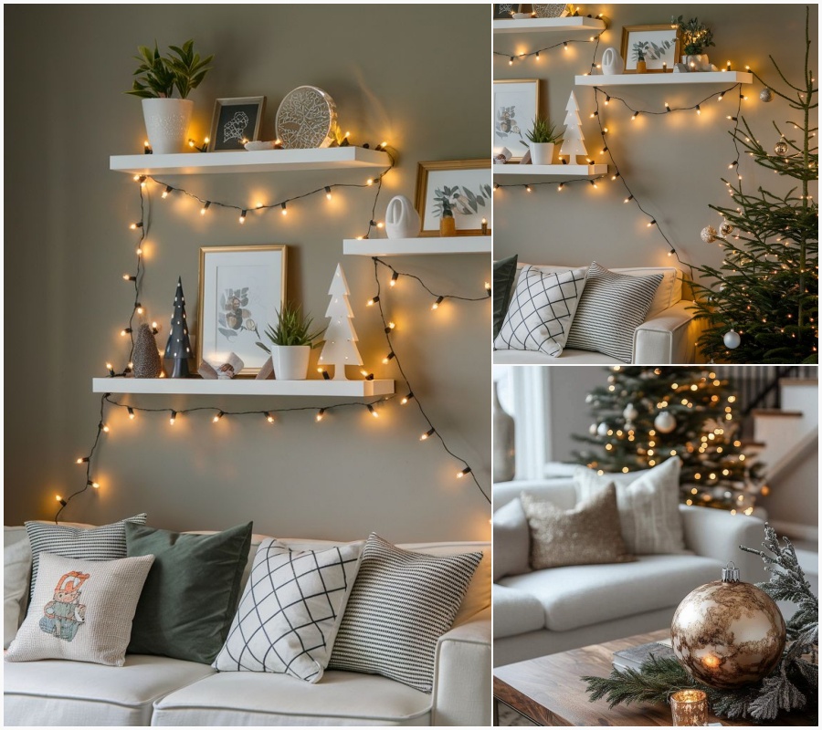 - ή ένα ράφι γεμάτο φωτάκια και φωτογραφίες.