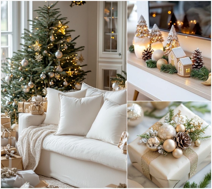 - Σαλόνι: το επίκεντρο της διακόσμησης. Φώτα, δέντρο, ριχτάρια, μαξιλάρια και λίγη λάμψη δεν έβλαψαν ποτέ κανέναν.