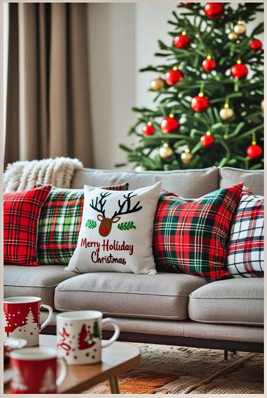 Μπορείς να προσθέσεις καρό κορδέλες στο δέντρο, να στολίσεις ένα ξύλινο δίσκο με κεριά και μικρά στολίδια, ή να κρεμάσεις καρό μπότες στο τζάκι — κάθε μικρή λεπτομέρεια φέρνει τη γιορτή λίγο πιο κοντά.