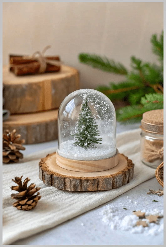 Αν θέλεις να δημιουργήσεις στολίδια που αποπνέουν καθαρή χειμωνιάτικη μαγεία, τότε οι διάφανες μπάλες γεμισμένες με κουκουνάρια, τεχνητό χιόνι και μίνι δεντράκια είναι η πιο όμορφη και φυσική επιλογή. Είναι σαν να κλείνεις μέσα σε μια μικρή γυάλινη σφαίρα ένα κομμάτι από το δάσος του χειμώνα.