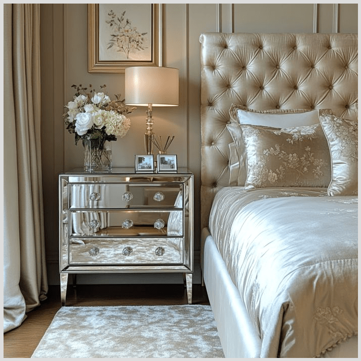 Τα λουξ κομοδίνα βασίζονται σε εκλεκτό ξύλο υψηλής ποιότητας και προσεγμένα φινιρίσματα. Τα σχήματα είναι κομψά, με λεπτομέρειες που προσθέτουν αίσθηση πολυτέλειας χωρίς υπερβολή. Συχνά συνδυάζονται με ιδιαίτερα πόμολα ή γυαλιστερές πινελιές που απογειώνουν την αισθητική.