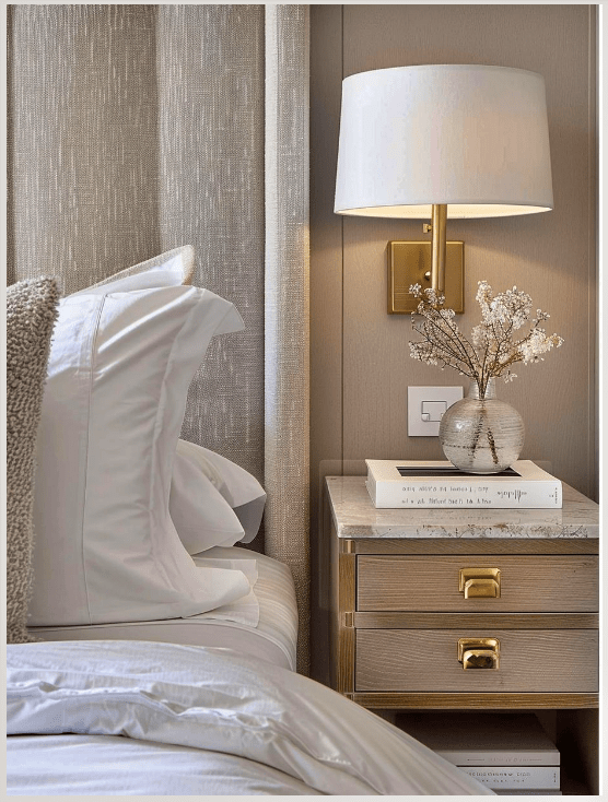 Η αισθητική ενός κομοδίνου εξαρτάται σε μεγάλο βαθμό από το πώς θα το διακοσμήσουμε. Το μυστικό είναι η ισορροπία. Ένα φωτιστικό με ζεστό φως αποτελεί σχεδόν απαραίτητο στοιχείο, καθώς δημιουργεί ατμόσφαιρα και εξυπηρετεί το διάβασμα ή τη χαλάρωση. Ένα βιβλίο ή ένα μικρό stack βιβλίων δίνει χαρακτήρα και προσωπικότητα στον χώρο.