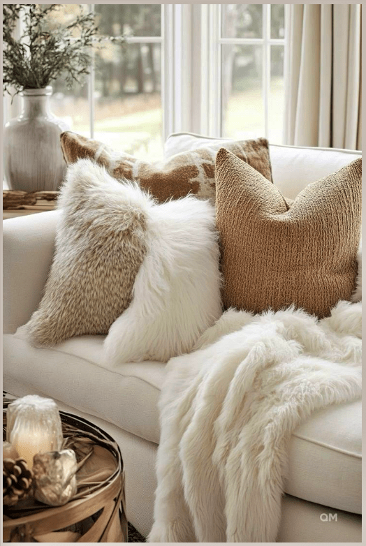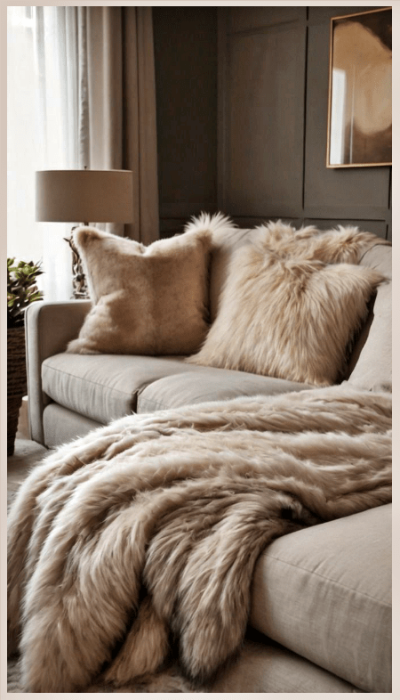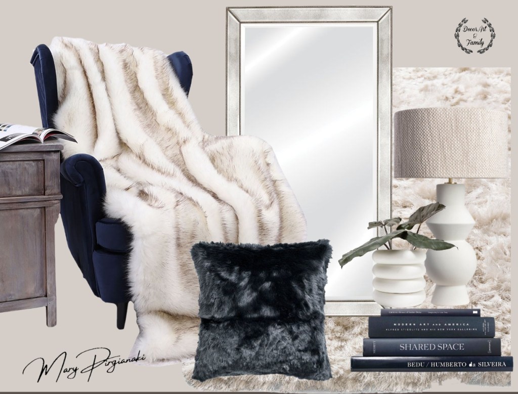 Οι υφές είναι το μυστικό. Η απαλή γούνα, συνθετική ή φυσική όψης, προσκαλεί την αφή και ενισχύει το αίσθημα χαλάρωσης. Σε συνδυασμό με φυσικά υλικά και ήρεμο φωτισμό, δημιουργείται ένα περιβάλλον που σε βοηθά να αποσυνδεθείς από την ένταση της ημέρας. Ένας χώρος που δεν είναι μόνο όμορφος, αλλά και ουσιαστικά ξεκούραστος.