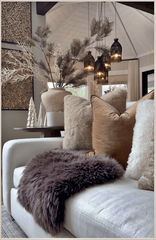 Τα ριχτάρια γούνες στο σαλόνι είναι από εκείνες τις λεπτομέρειες που αλλάζουν αμέσως την αίσθηση του χώρου τον χειμώνα. Απλωμένα στον καναπέ ή στην πολυθρόνα, δημιουργούν ένα ζεστό, φιλόξενο περιβάλλον που σε προσκαλεί να χαλαρώσεις. Οι απαλές υφές και οι γήινες αποχρώσεις δένουν με τον χειμωνιάτικο καιρό και κάνουν το σαλόνι να μοιάζει πιο οικείο, πιο ήσυχο, σαν ένα μικρό καταφύγιο από το κρύο έξω.