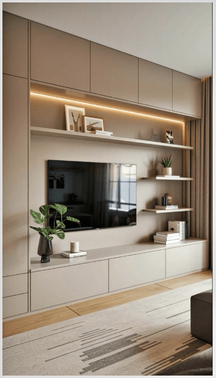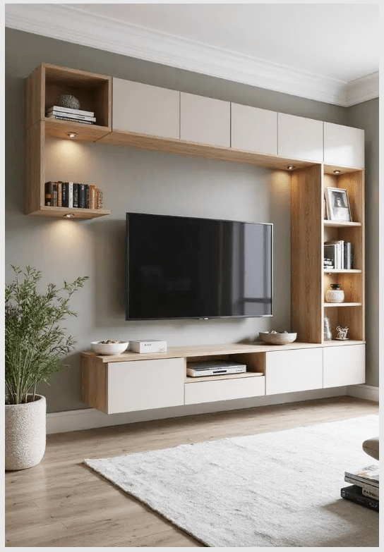 Το σημαντικό είναι να υπάρχει ισορροπία. Είτε επιλέξετε απλές γραμμές είτε πιο σύνθετες λύσεις, η σύνθεση πρέπει να εξυπηρετεί την καθημερινότητα και να «μιλάει» αισθητικά με το υπόλοιπο σαλόνι. Η τηλεόραση δεν χρειάζεται να κυριαρχεί, αλλά να ενσωματώνεται αρμονικά.