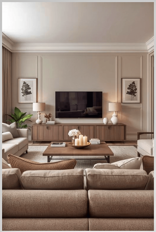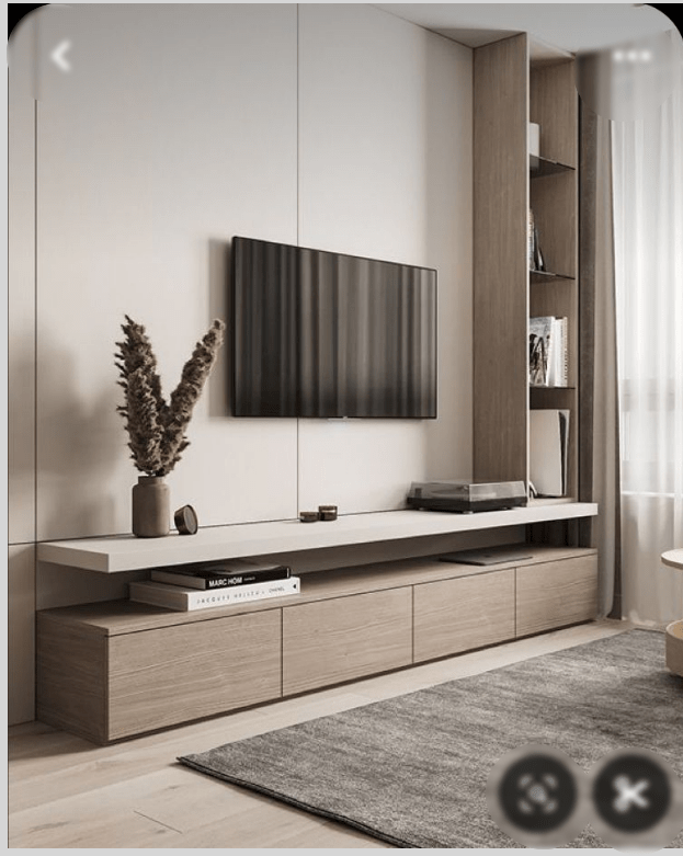 Τα έπιπλα που τη συνοδεύουν παίζουν καθοριστικό ρόλο. Οι απλές γραμμές, όπως χαμηλά έπιπλα τηλεόρασης με καθαρό design, προσφέρουν μια minimal και διαχρονική αισθητική. Είναι ιδανικές για χώρους που θέλουν να δείχνουν ανάλαφροι και τακτοποιημένοι, χωρίς πολλά στοιχεία να «ανταγωνίζονται» μεταξύ τους.