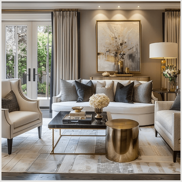 Τα έπιπλα είναι η βάση κάθε πολυτελούς σαλονιού. Ένας καναπές με καλοδουλεμένες γραμμές, πλούσια υφάσματα και άνετο κάθισμα δίνει αμέσως τον τόνο. Όταν συνδυάζεται με μαξιλάρια σε βελούδινες ή σατινέ υφές, σε ζεστές αποχρώσεις και με διακριτικές χρυσές λεπτομέρειες, το αποτέλεσμα γίνεται πιο εκλεπτυσμένο και φιλόξενο.