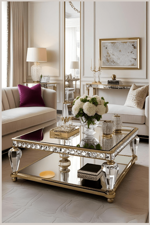 Όταν συνδυάζονται με μοναδικά διακοσμητικά στοιχεία, το αποτέλεσμα γίνεται ακόμα πιο εντυπωσιακό. Ένα ιδιαίτερο βάζο, ένα γλυπτό αντικείμενο ή ένα μεταλλικό διακοσμητικό με λάμψη λειτουργούν σαν κοσμήματα πάνω στο κρύσταλλο, τραβώντας το βλέμμα χωρίς υπερβολή. Αυτές οι μικρές, προσεγμένες λεπτομέρειες δίνουν χαρακτήρα στο σαλόνι και μετατρέπουν το τραπεζάκι σε σημείο αναφοράς, αναδεικνύοντας συνολικά τον χώρο με κομψότητα και προσωπικότητα.