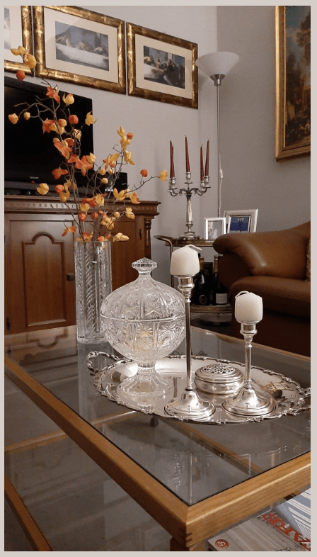 Το ασημένιο στοιχείο λειτουργεί σαν το τέλειο συμπλήρωμα. Ένας δίσκος, ένα μικρό διακοσμητικό ή μια λεπτομέρεια σε ασημί τόνο δένει αρμονικά με το κρύσταλλο και αναδεικνύει το σύνολο. Το αποτέλεσμα είναι ένα τραπεζάκι που δεν είναι απλώς λειτουργικό, αλλά γίνεται σημείο αναφοράς στο σαλόνι, αποπνέοντας φροντίδα, λάμψη και διαχρονική κομψότητα.
