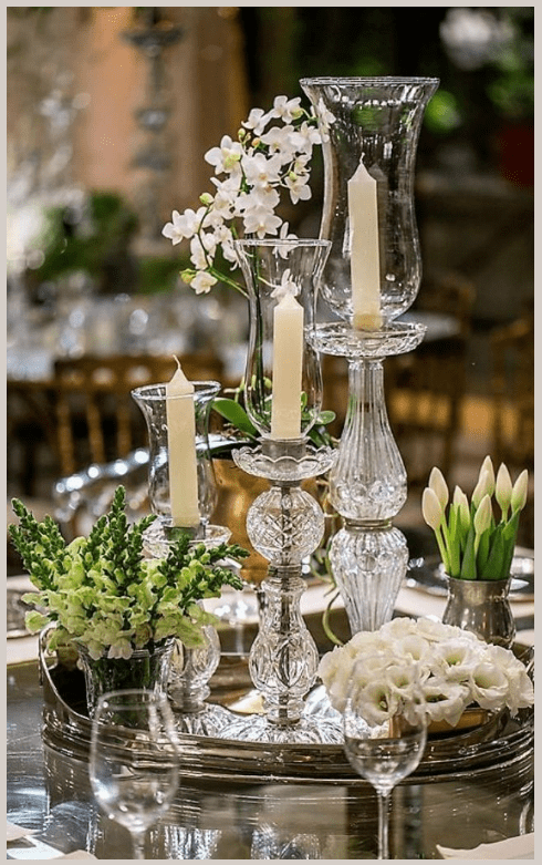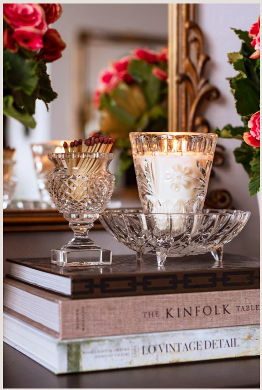 Τα κρυστάλλινα κηροπήγια προσθέτουν ατμόσφαιρα. Το φως των κεριών περνά μέσα από το κρύσταλλο και δημιουργεί αντανακλάσεις που κάνουν το σαλόνι να δείχνει πιο ήρεμο και πιο φιλόξενο. Είναι ιδανικά για βραδινές στιγμές, όταν θέλεις ο χώρος να σε αγκαλιάζει χωρίς έντονο φωτισμό.