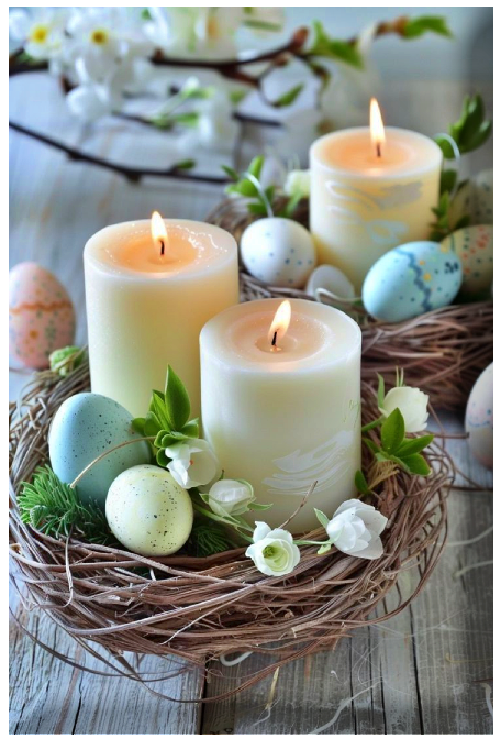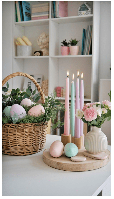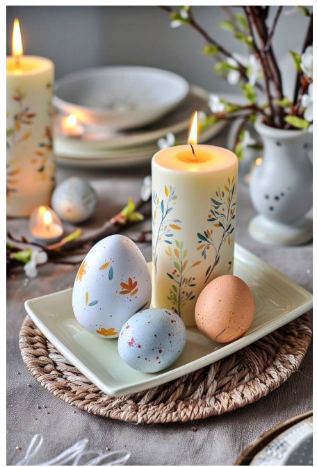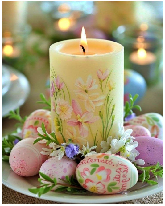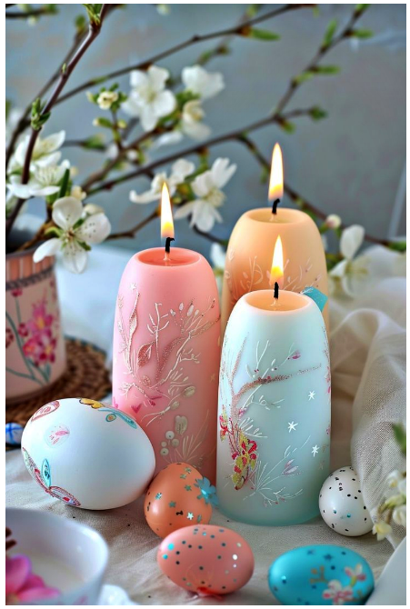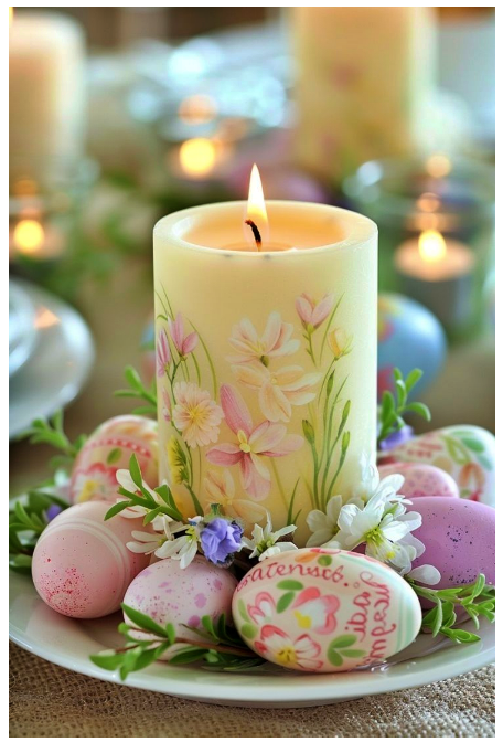 Αν θέλεις να δώσεις μια ζεστή και γιορτινή ατμόσφαιρα στο σπίτι σου το Πάσχα, τα κεριά είναι από τις πιο όμορφες και εύκολες επιλογές. Και το καλύτερο; Μπορείς να τα προσαρμόσεις ακριβώς στο στυλ που σου αρέσει.Μπορείς να ξεκινήσεις με έτοιμα πασχαλινά κεριά σε παστέλ αποχρώσεις — λιλά, ροζ, σιέλ ή απαλό κίτρινο. Είναι διακριτικά, φωτεινά και ταιριάζουν τέλεια με την ανοιξιάτικη διάθεση. Τοποθέτησέ τα σε δίσκους, πιατέλες ή μέσα σε ψάθινα καλάθια και συνδύασέ τα με λουλούδια για ένα ολοκληρωμένο αποτέλεσμα.