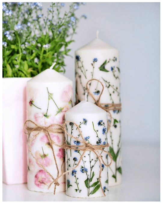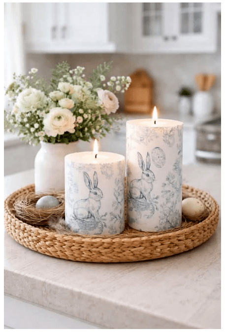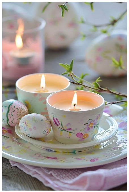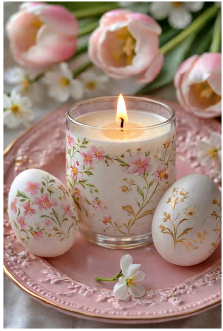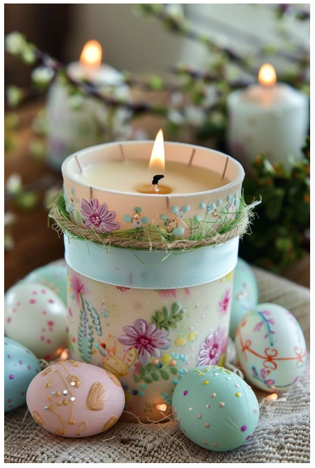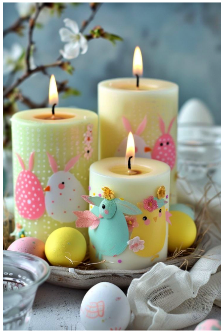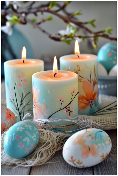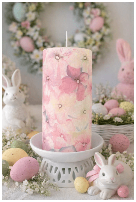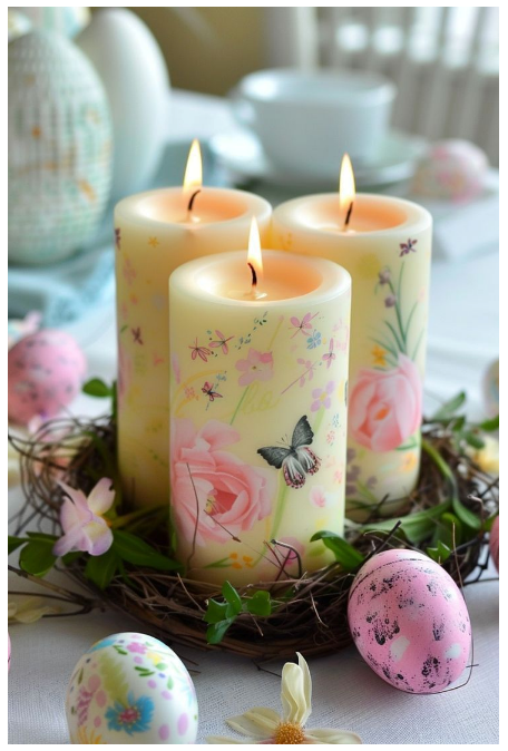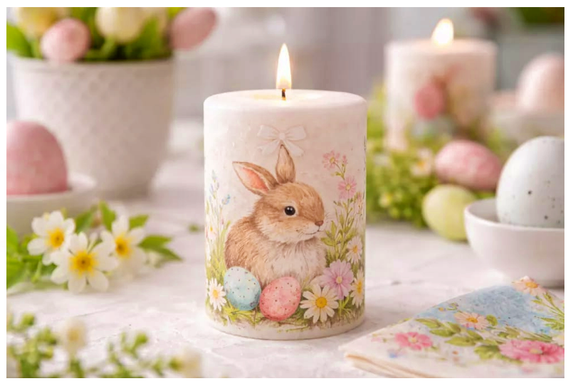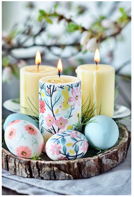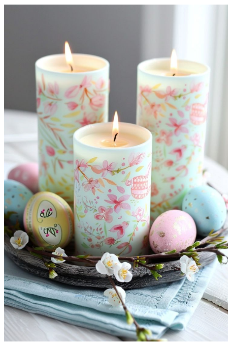 Αν όμως σου αρέσει να δημιουργείς, μπορείς να φτιάξεις τα δικά σου. Με την τεχνική του ντεκουπάζ, πάρε απλά λευκά κεριά και στόλισέ τα με όμορφες χαρτοπετσέτες — λουλούδια, πασχαλινά σχέδια ή ακόμα και απαλά μοτίβα. Είναι εύκολο και δίνει ένα πολύ κομψό αποτέλεσμα.