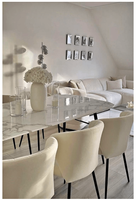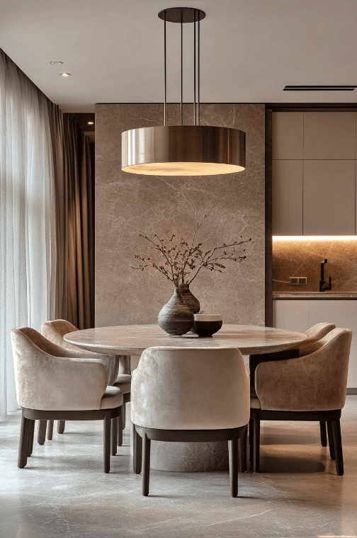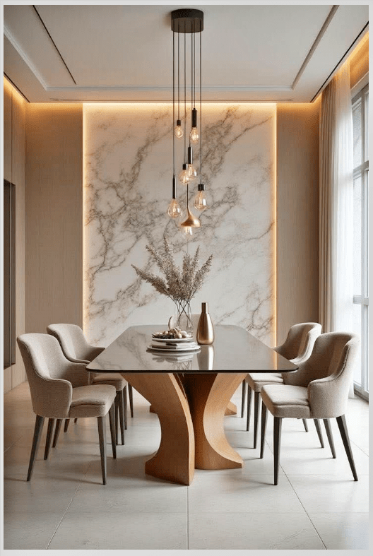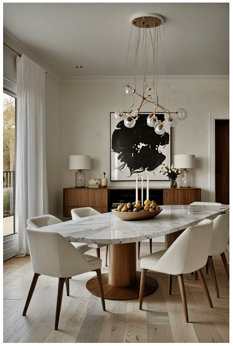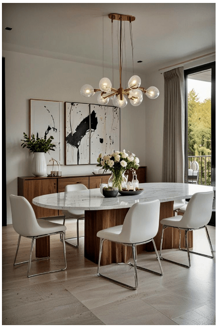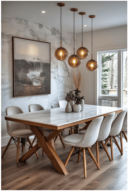 Τραπεζαρία με μαρμάρινη επιφάνεια: Διακόσμηση, βάζα και σωστός φωτισμός!