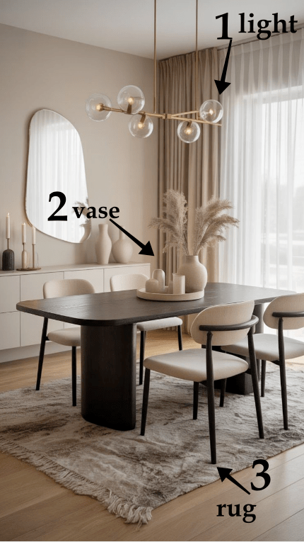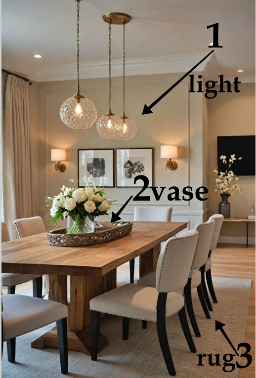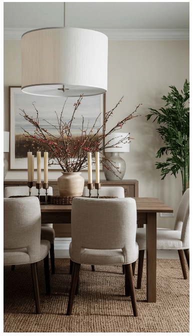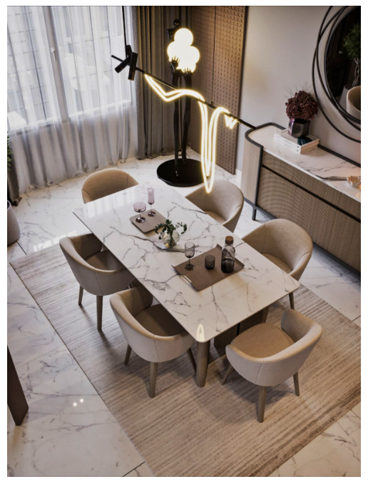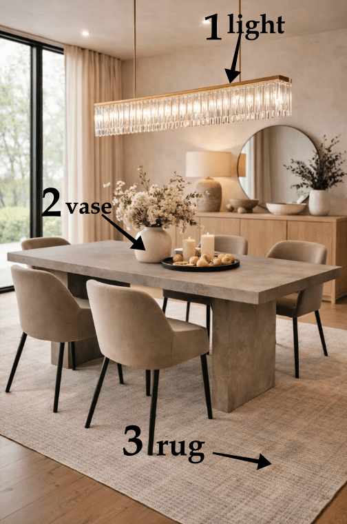 - Διατήρησε αναλογίες μεταξύ τραπεζιού, καρεκλών και φωτιστικού.