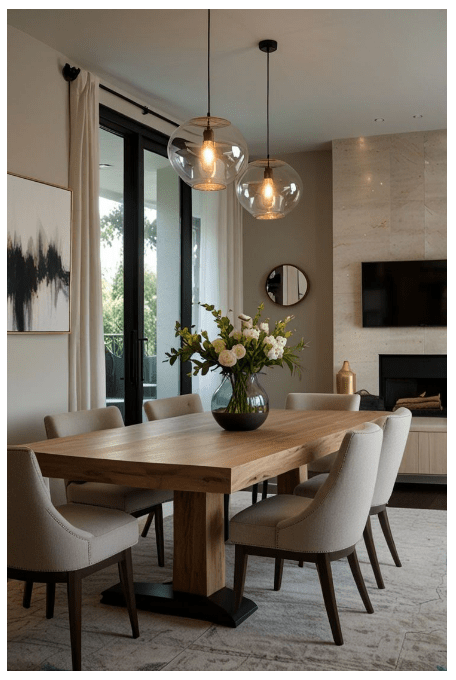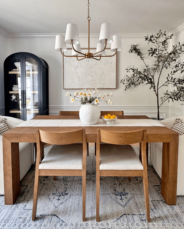 - Ξύλινο τραπέζι: Δίνει ζεστασιά και διαχρονικότητα. Ταιριάζει σχεδόν σε όλα τα στυλ.
