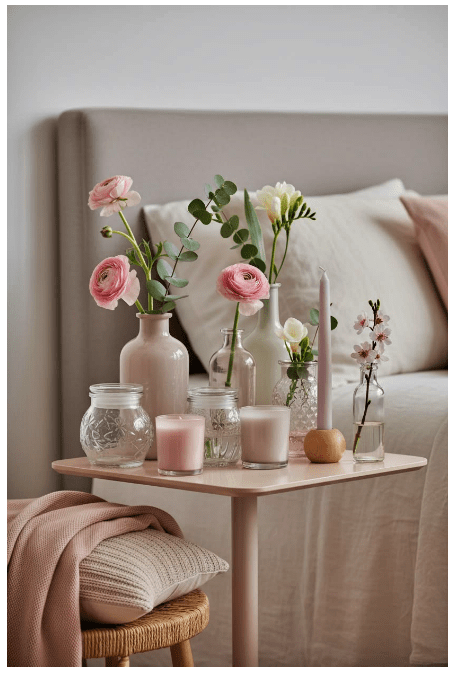 Ο συνδυασμός με κεριά και λουλουδάκια μπορεί να αλλάξει εντελώς το σκηνικό της διακόσμησης στον χώρο σου. Τα κεριά προσθέτουν ζεστασιά και ατμόσφαιρα, ενώ τα λουλούδια δίνουν φρεσκάδα και ζωντάνια.