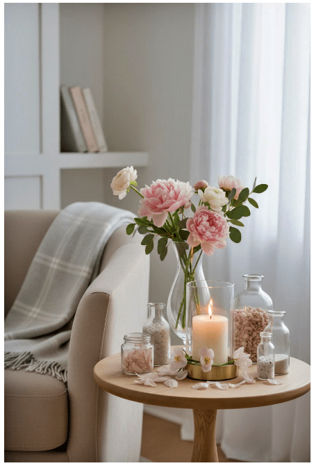 Μπορείς να προσθέσεις και μικρά κεριά ή λουλούδια για μια πιο ρομαντική και χαλαρωτική ατμόσφαιρα.